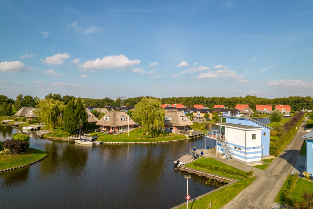 À l'extérieur, vous trouverez un jardin avec une terrasse au bord de l'eau, équipée de mobilier de jardin et d'une jetée. Un parking pour une voiture est disponible directement devant le bungalow. Des places de parking centrales sont également disponibles au sein du parc de vacances. Au parc de vacances Waterpark de Bloemert, vous pouvez réserver différents types de maisons et chalets pouvant accueillir de deux à douze personnes. Certains modèles incluent un sauna et/ou une piscine intérieure privée.
