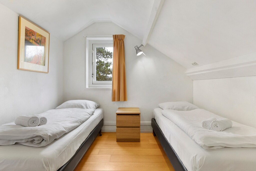Située dans la partie boisée du parc, la maison de vacances est confortablement et entièrement meublée et s'étend sur deux étages. Au rez-de-chaussée, vous trouverez un salon avec télévision et une cuisine ouverte équipée d'un micro-ondes et d'un lave-vaisselle. Vous trouverez également une chambre double et une salle de bains avec baignoire et douche. Des toilettes séparées se trouvent dans le hall. Au premier étage, vous trouverez deux chambres, chacune équipée de deux lits simples avec sommier à ressorts. Un lit bébé est fourni.
