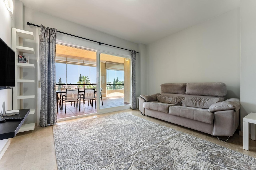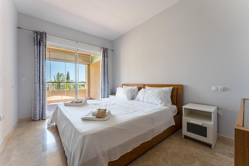L'appartement dispose de deux grandes pièces, conçues pour offrir un maximum de confort et de repos. Chaque chambre est équipée de lits confortables et de placards spacieux. De plus, nous disposons de deux salles de bains complètes, modernes et fonctionnelles, qui garantissent l'intimité et le confort de tous les invités. La cuisine est entièrement équipée de tous les appareils et ustensiles nécessaires pour préparer de délicieux repas pendant votre séjour. La salle à manger est un espace spacieux et lumineux, idéal pour se détendre après une journée d'exploration ou pour profiter de dîners en famille ou entre amis. Depuis le salon, on accède à une charmante terrasse offrant une vue sur le jardin et la piscine communautaire. C'est l'endroit idéal pour savourer un café le matin ou un verre de vin au coucher du soleil, dans une atmosphère calme et sereine.