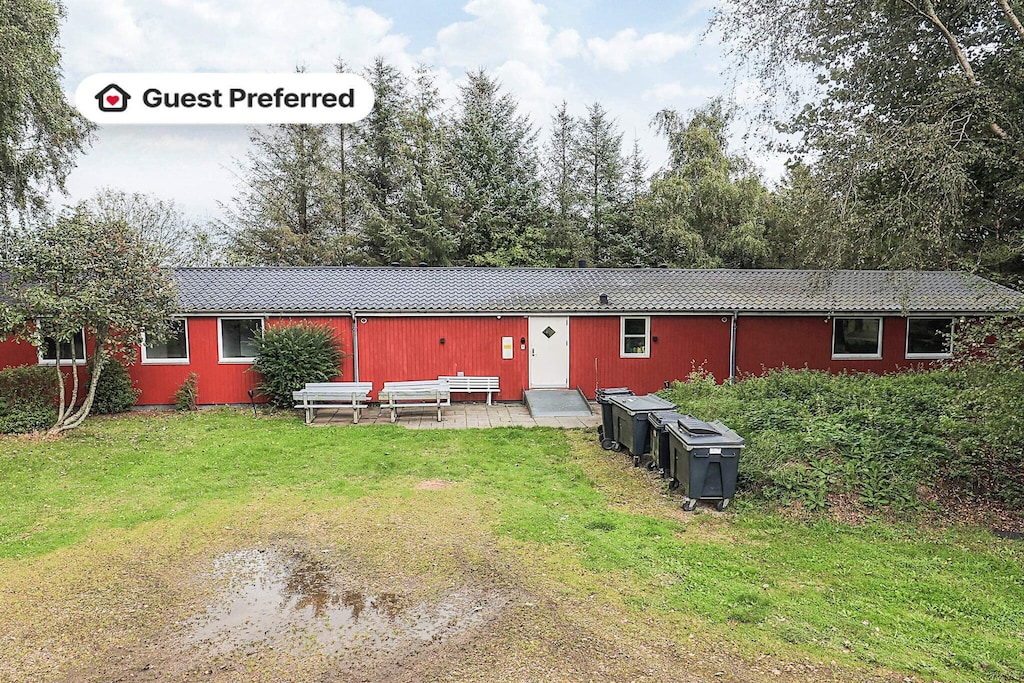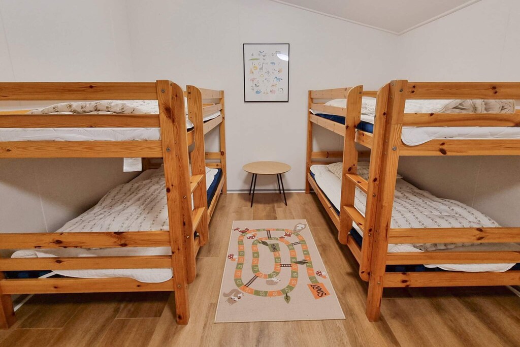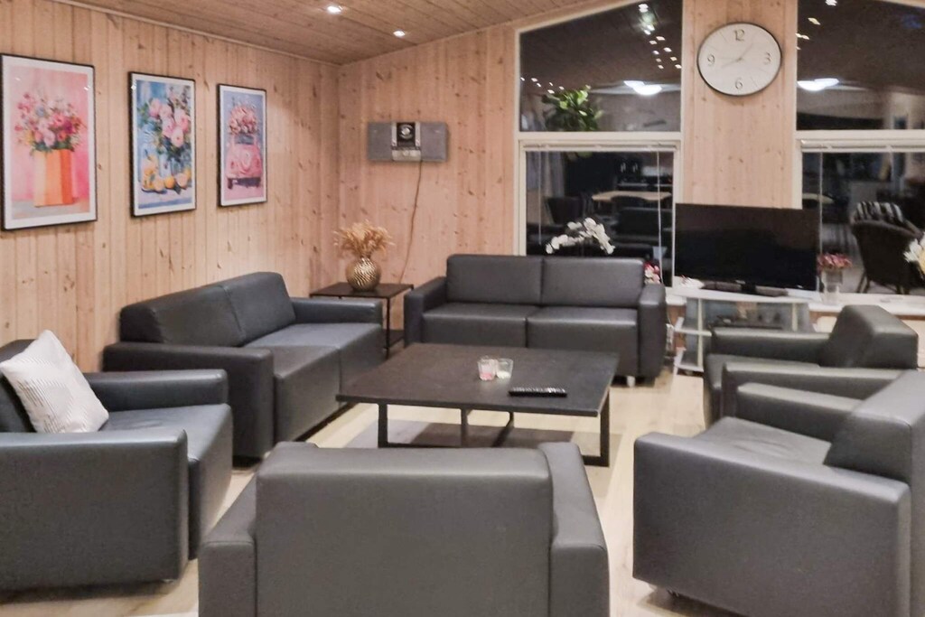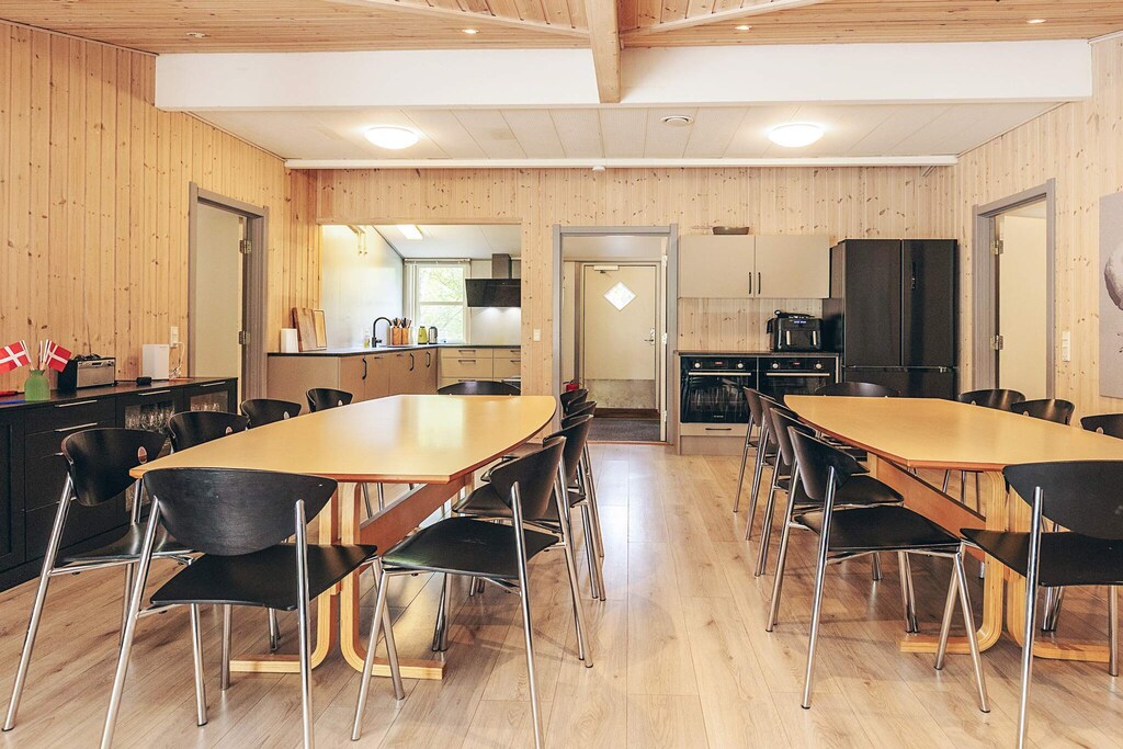 Ce chalet pour 20 personnes de pas moins de 264 m & # 178; est situé à seulement env. A 200 mètres du Limfjord. La maison est meublée simplement et convient très bien aux réunions de famille, aux écoles de camping, aux séjours de cours et bien sûr aussi aux vacances traditionnelles. La maison est située dans un cadre pittoresque avec un bon abri. A proximité se trouve une aire de jeux commune pour les plus jeunes. Non loin de la maison, vous trouverez une bonne plage de Limfjord, très adaptée aux enfants. La maison contient un salon spacieux avec télévision avec antenne parabolique, chaîne stéréo avec lecteur CD et pour une soirée d'été fraîche ou une journée d'automne avec de la pluie et des débris, il y a un poêle à bois confortable pour compléter le chauffage. Internet sans fil illimité via le réseau fibre. Depuis le salon, il y a un accès à la terrasse de la maison, où vous pourrez déguster un dîner préparé sur le gril de la maison. Il y a un bac à sable. La cuisine est équipée de plaques vitrocéramiques, lave-vaisselle, réfrigérateur/congélateur et micro-ondes. Il y a aussi une laveuse et une sécheuse. La maison dispose de quatre salles de bains, une accessible aux personnes handicapées avec toilettes et douche, une avec deux toilettes et deux avec deux cabines de douche chacune. Il y a 10 chambres. Sept chambres sont équipées d'un lit double, deux avec chacune un lit simple et une avec deux lits superposés pour un total de quatre personnes.