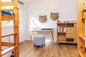 God fordeling af soverum på hver side af køkken/stue (= fælles opholdssted). Tæt ved strand til trav