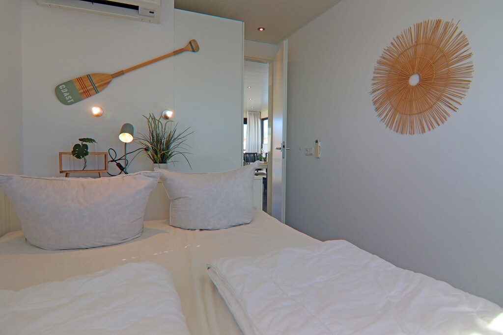 Het verblijf op de houseboat was een heerlijke ervaring, We waardeerden de rustige sfeer en de nabijheid van zowel de jachthaven als het strand, Het terras was een heerlijke plek voor een ochtendkoffie, Even een waarschuwing, zorg ervoor dat je het weer van tevoren controleert, aangezien de temperatuur 's avonds kan dalen, Al met al was het een geweldige retraite!