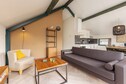 A l'extérieur, un jardin avec terrasse et salon de jardin. Il y a une borne de recharge pour votre vélo électrique. Il y a une place de stationnement pour une voiture à proximité du bungalow.