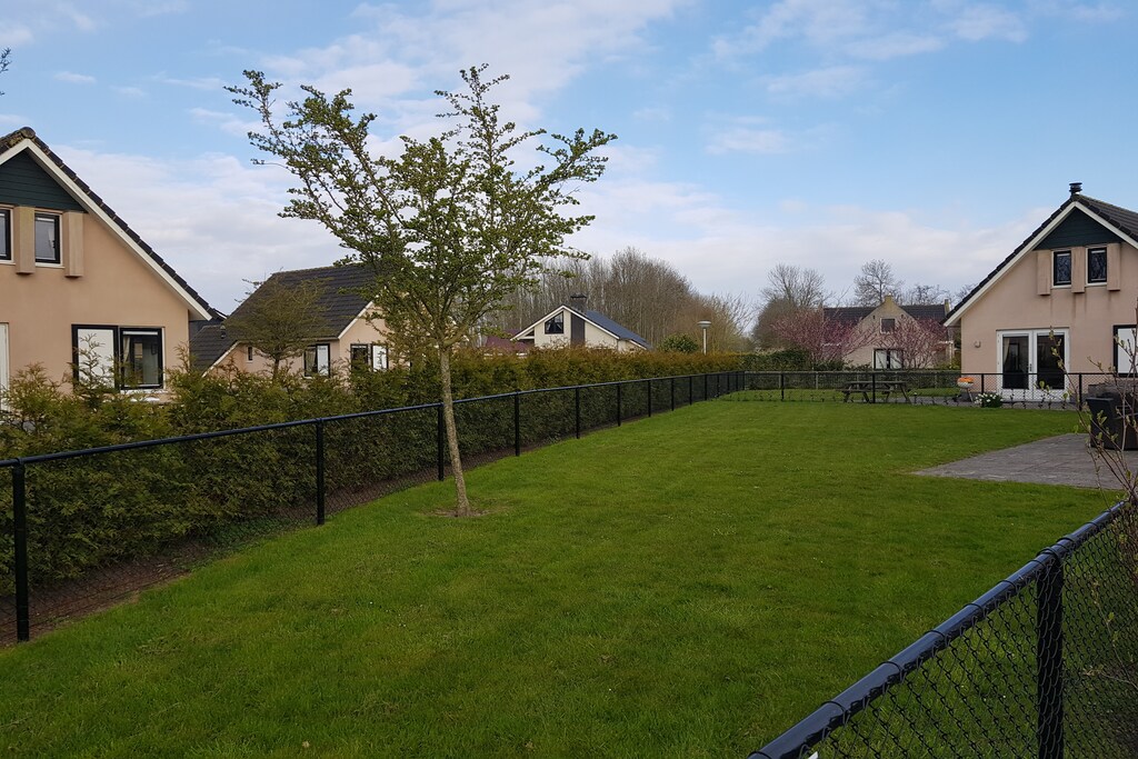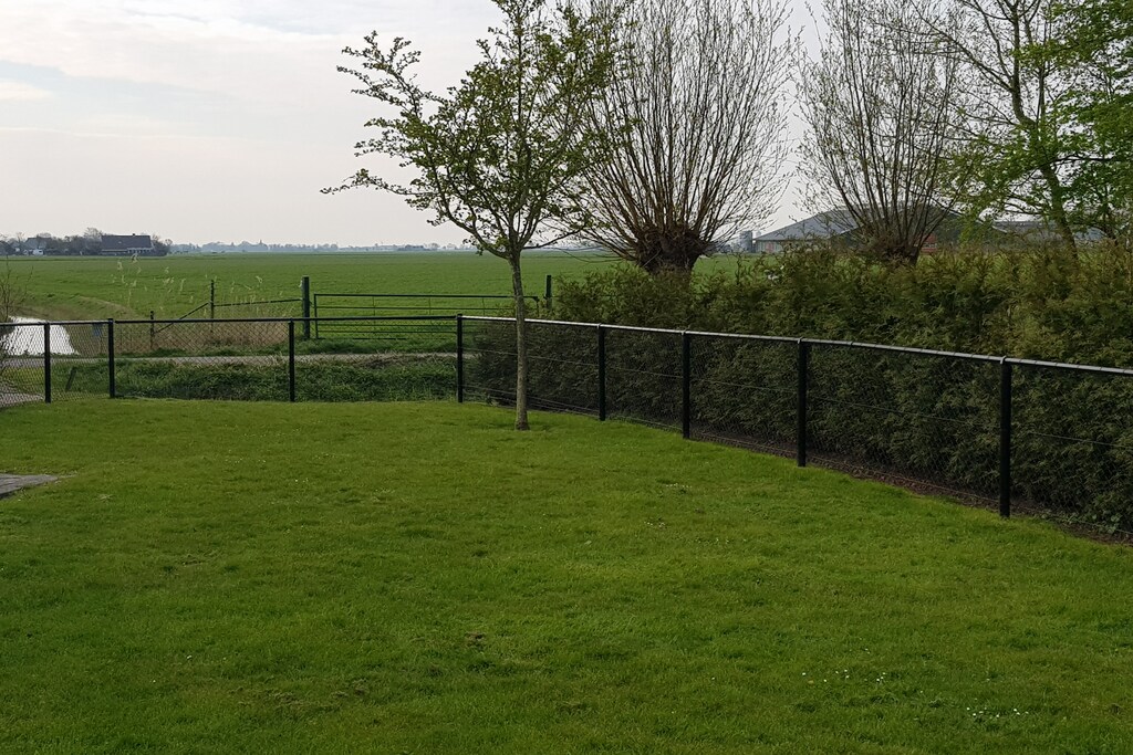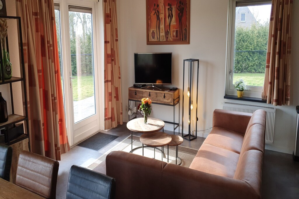 Le salon spacieux avec portes-fenêtres donne directement sur une belle terrasse avec un coin salon spacieux et des chaises avec coussins toutes saisons, une table à manger avec des chaises et une table de pique-nique. La vue est vaste et vous voyez régulièrement un oiseau de proie suspendu dans le ciel à la recherche d'une proie. Il y a beaucoup d'espace pour jouer sur la grande pelouse autour de la maison.