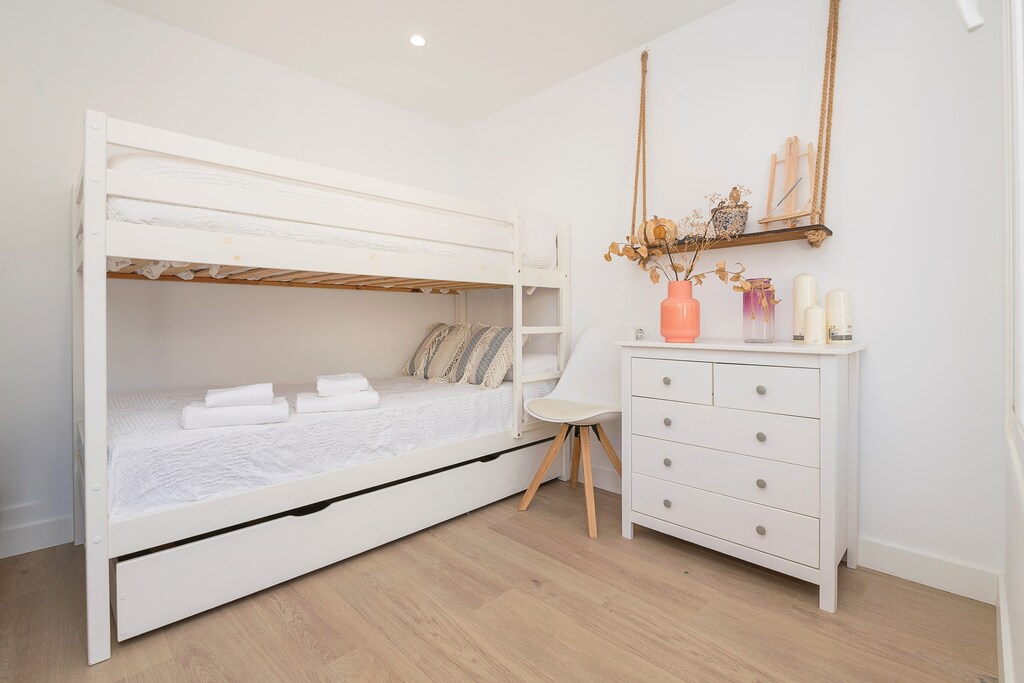 L'intérieur est de plain-pied. En entrant, vous découvrirez la salle à manger équipée d'une cheminée, de la climatisation, d'une Smart TV et d'une table pour 6 personnes. La cuisine, avec ses plaques vitrocéramiques, est entièrement équipée avec tous les ustensiles nécessaires pour cuisiner confortablement. Vous y trouverez également un lave-linge, un fer et une table à repasser. Pour la nuit, trois chambres vous attendent. Deux d'entre elles sont équipées de lits doubles et la troisième, située dans la petite maison indépendante, dispose d'un lit superposé avec deux lits simples. Une salle de bain avec douche complète votre séjour. Si vous voyagez avec un bébé, nous pouvons vous fournir un lit bébé et une chaise haute.