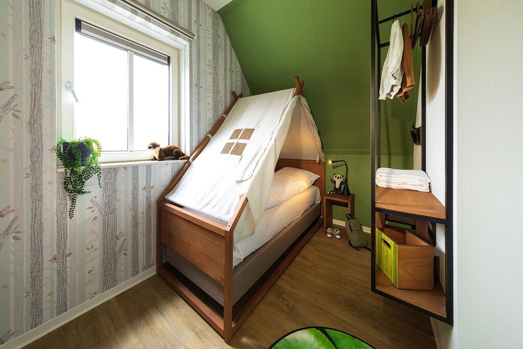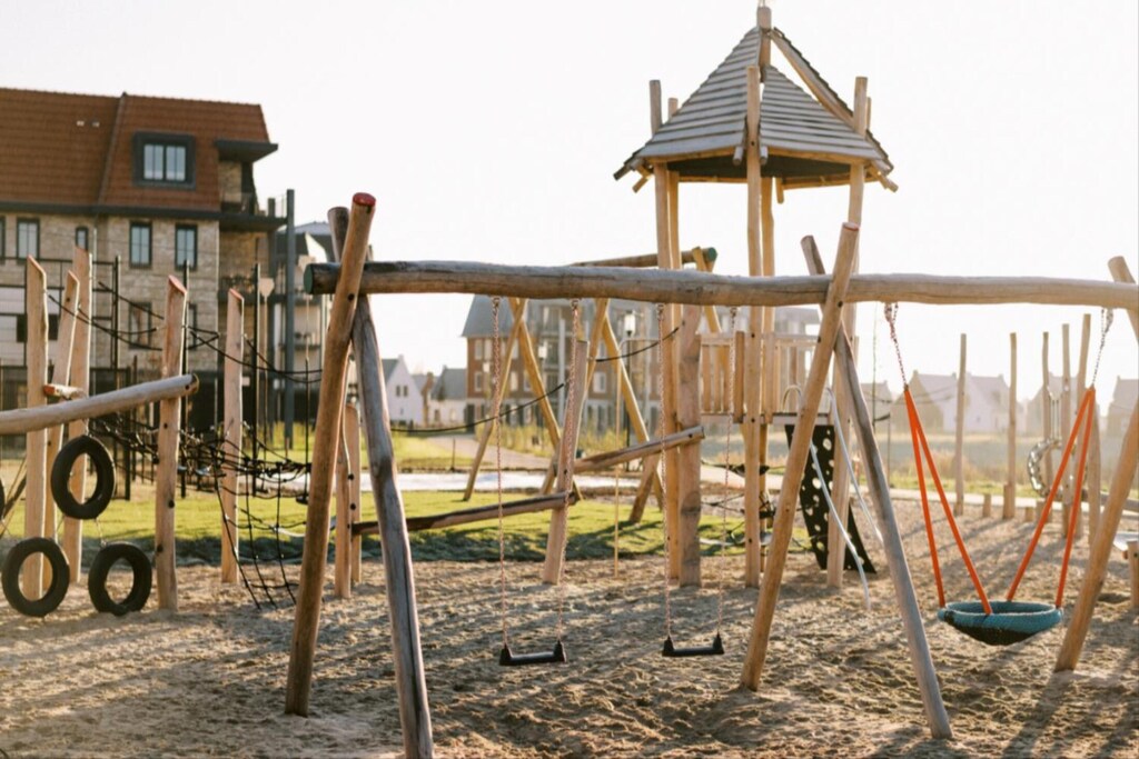 Cette villa de vacances de 100 m² adaptée aux enfants est parfaite pour les familles, avec une chambre d'enfants et une cour arrière clôturée à côté d'une grande aire de jeux. La cuisine ouverte entièrement équipée comprend un réfrigérateur, une cuisinière à induction, une cafetière, une bouilloire, un lave-vaisselle et un four mixte. La villa dispose d'une chambre principale avec deux lits simples, d'une chambre d'enfants avec des lits simples spéciaux, de deux toilettes séparées, d'un débarras avec lave-linge/sèche-linge et d'une terrasse couverte.