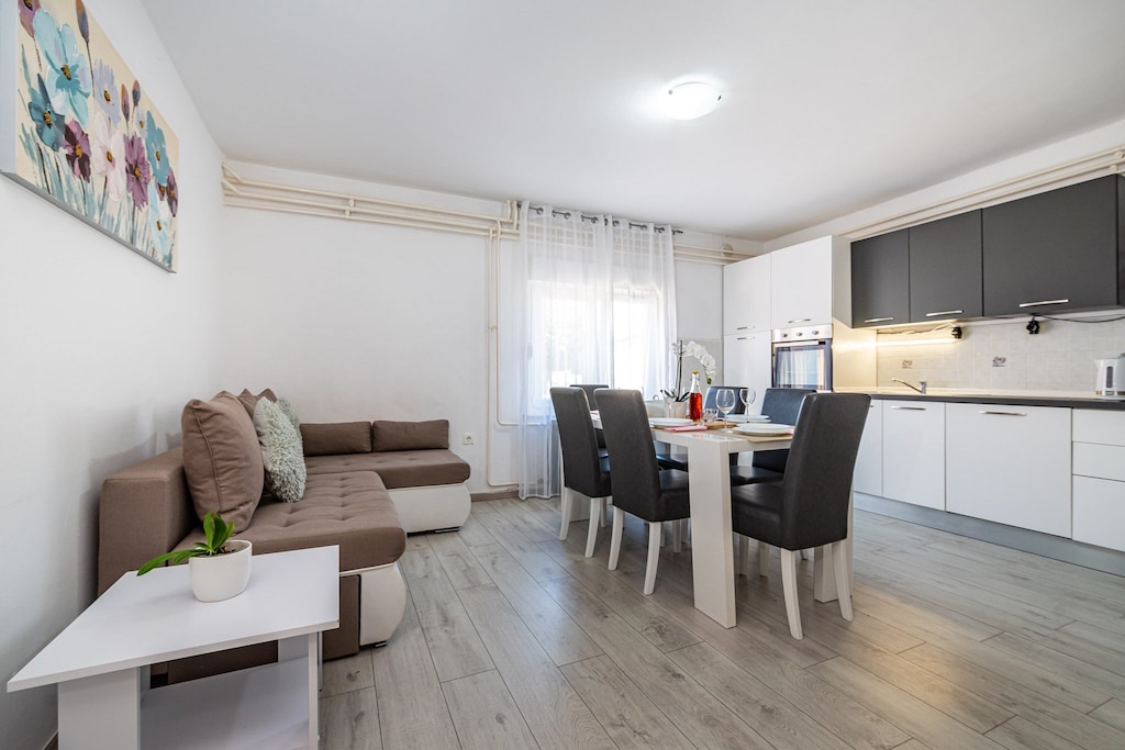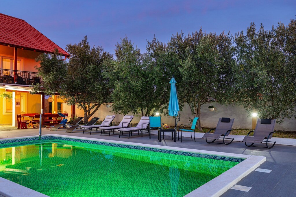 Villa Vesna is situated in Zadar, on the Dalmatian coast. Spacious terrace with sun beds and parasols, seasonal swimming pool and shared garden are at your disposal, which makes this place ideal for family or friends vacation. You have access to BBQ facilities and an dining area. Children's playground is also at your disposal.