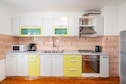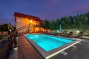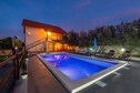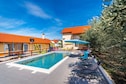 This five bedroom villa with swimming pool can accommodate up to fourteen people. It features free WiFi, air conditioning as well as SAT LCD TV. The open space living room comes with sofa and sitting area, and it's combined with the equipped kitchen and dining area. All the bedrooms are furnished with large double beds. One bathroom comes with a shower, while the other one is fitted with bathtub. Washing machine, iron and ironing board are at your disposal.